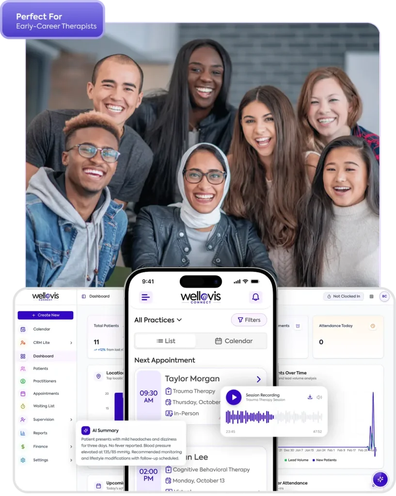 Students and interns often struggle with managing practicum hours, documenting supervision sessions, and preparing reports required by licensing boards. Wellovis simplifies this process by providing structured tools designed specifically for early-career professionals.