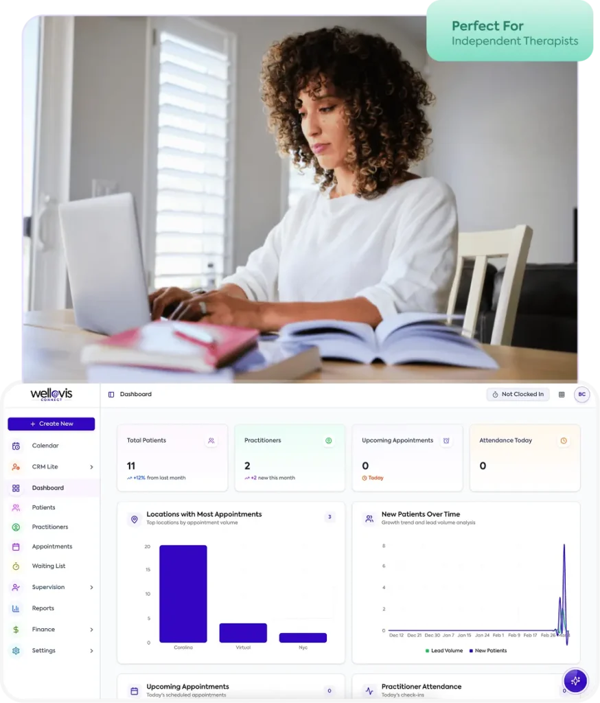 Wellovis allows therapists to launch their practice without expensive upfront software costs.